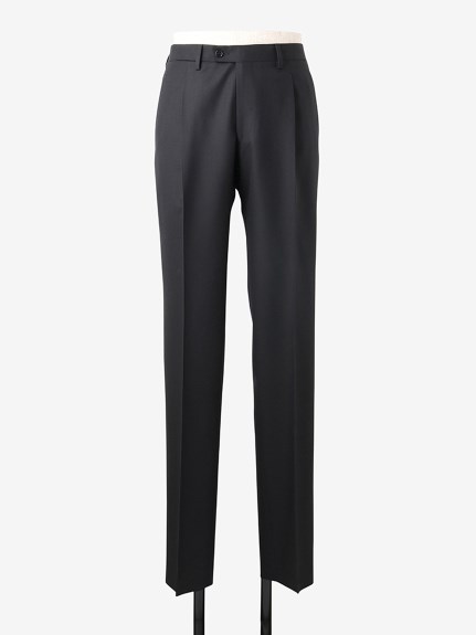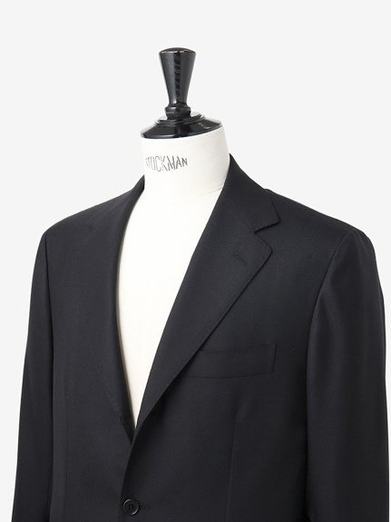 きめ細やかなウール生地を使用し、シックなカラーでデザインされた段返り3つボタン仕様のスーツ。ゴージラインを高めに設定したラペルが顔周りを洗練された印象に演出。ウエストを程よくシェイプしながらも、ハンドメイドとマシンメイドを巧みに融合することで美しい立体的なシルエットを構築しています。ジャケットの後ろ裾はサイドベンツで仕上げられており、スマートなシルエットを描くパンツとのバランスも絶妙。